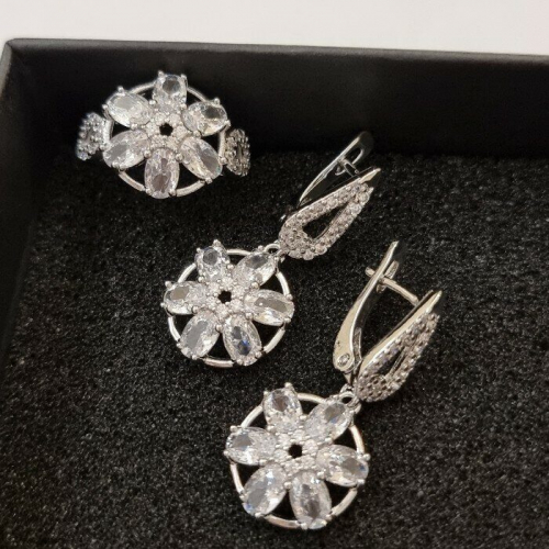 Описание Размер серьги: 3.3*1.6 см. Размер кольцо: ширина цветной части 1.6 см. Замок: английский.