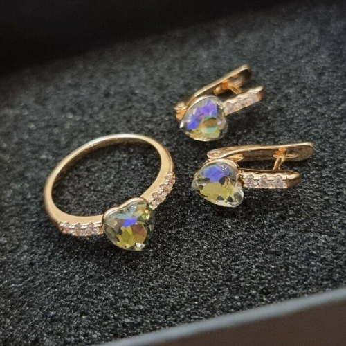 Описание Размер серьги: 1.6*0.8 см. Размер кольцо: размер сердечка 0.8 см. Замок: английский.