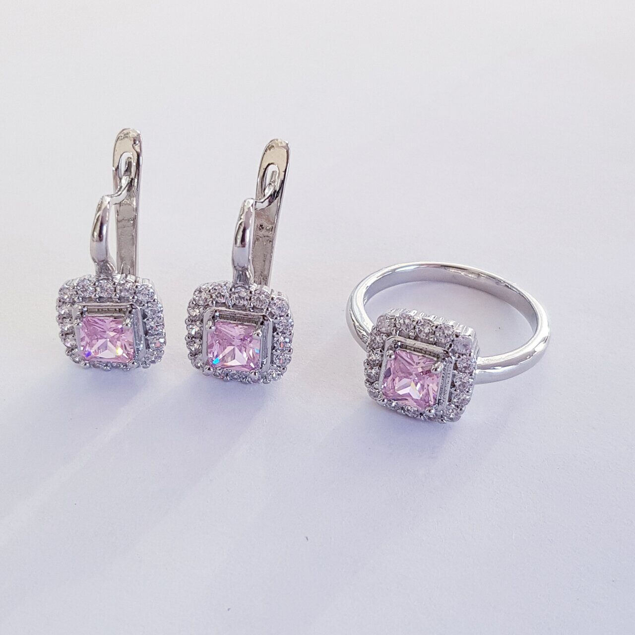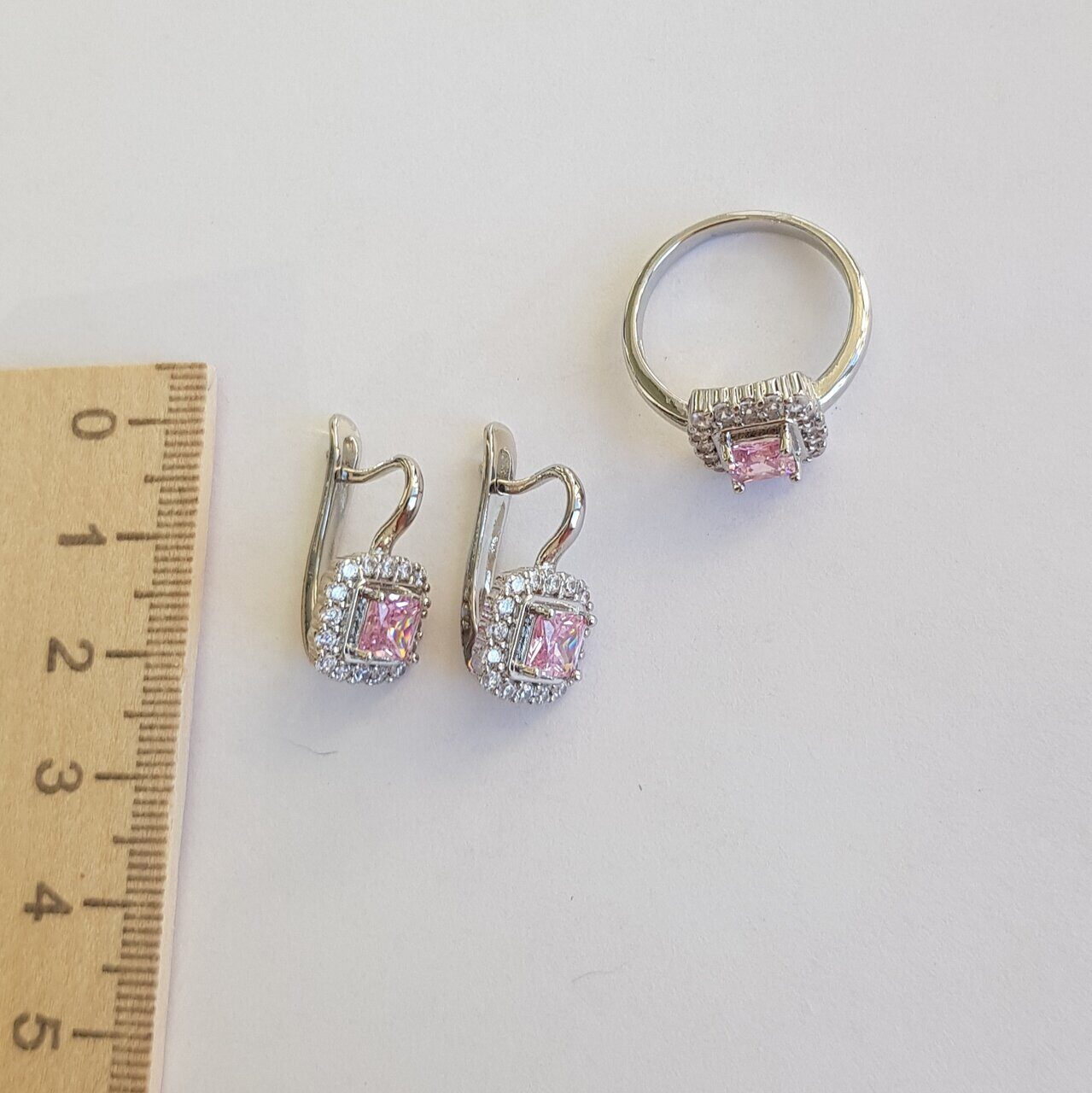 Описание Размер кольца: 19. Размер серёжек: 1,8*1 см. Замок: английский. Материал: металл, кристалл. Вес: 7 гр.