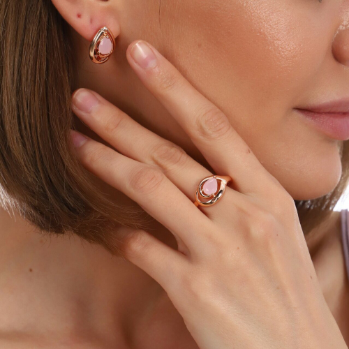 Описание Размер кольца: 17. Размер серёжек: 1,7*1,2 см. Замок: английский. Материал: металл, кристалл. Вес: 9 гр.