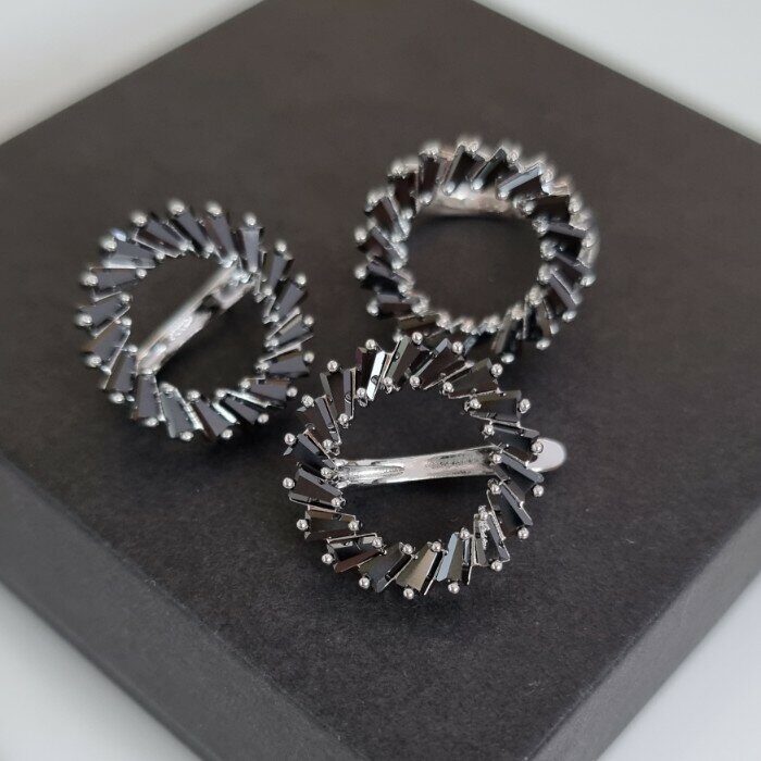 Комплект ювелирной бижутерии коллекция "Дубай"серьги и кольцо, покрытие посеребрение, вставка: черные цирконы, 38052, Уценка, арт.08.1597