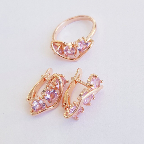 Комплект коллекция "Дубай", покрытие позолота с камнем, цвет розовый серьги, кольцо р-р 19, Е6166, арт.747.942