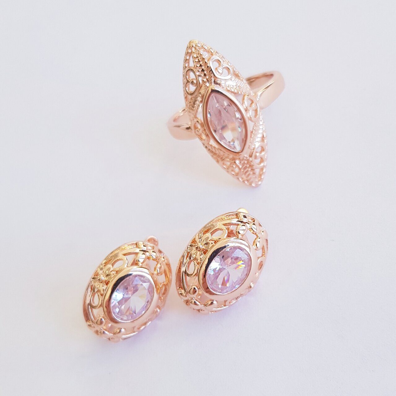 Описание Размер кольца: 19. Размер серёжек: 1,7*1,3 см. Замок: английский. Материал: металл, кристалл. Вес: 9 гр.