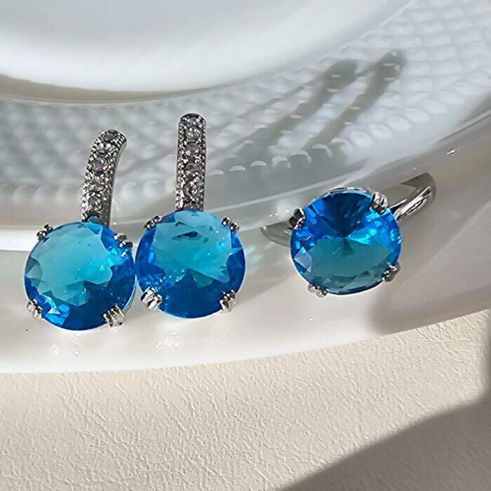 Комплект ювелирной бижутерии 18 р-р , с покрытием посеребрением, вставка: камень голубой, арт.216.011-18