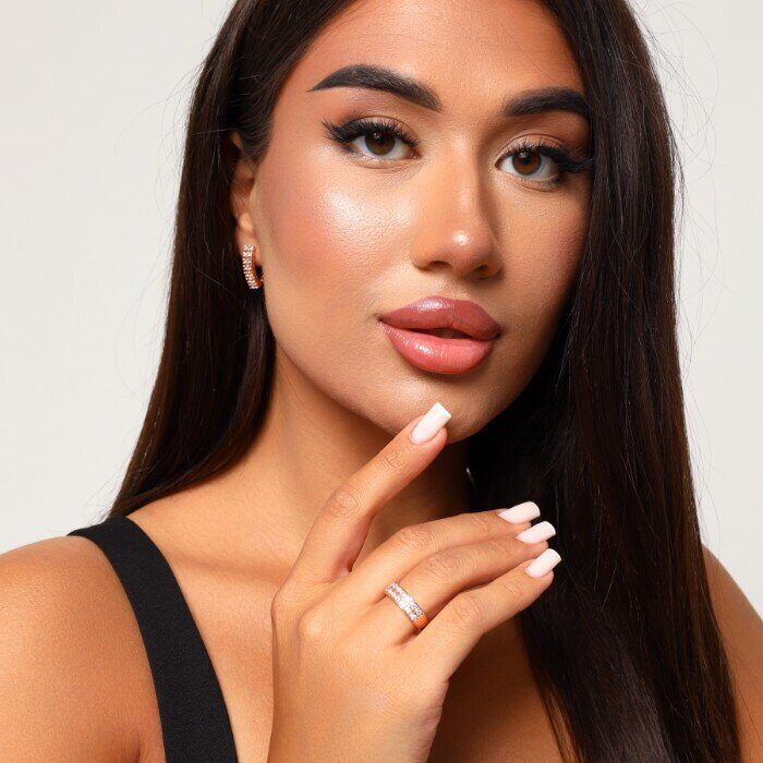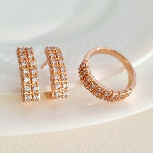 Комплект ювелирной бижутерии дорожка, позолота: серьги и кольцо с фианитами, р-р 18, арт.213.016-18