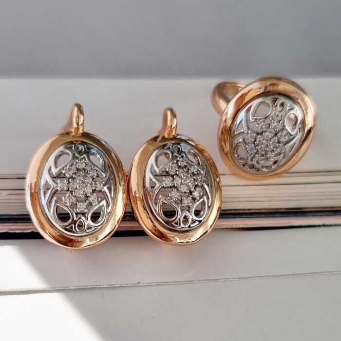 Комплект ювелирной бижутерии Дубайское золото 19 р-р , с покрытием позолотой, вставка: фианиты, 0990, Уценка, арт. 08.1737