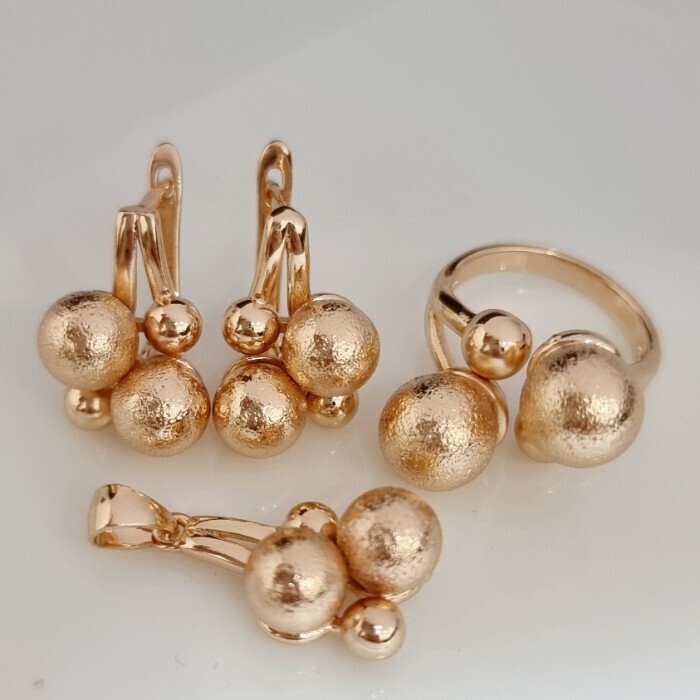Комплект ювелирной бижутерии Дубайское золото покрытие позолота, серьги, кольцо разъемное и кулон, Уценка, арт.08.1994