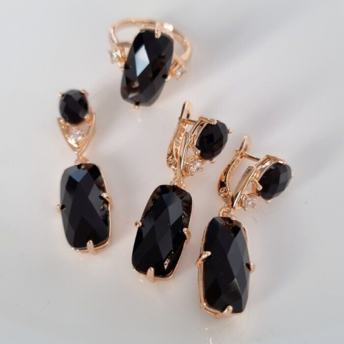 Описание Уценка! На одной серьге, тенмные пятна. Серьги размер: 2.1*1.8 см. Кольцо ширина: 1.8 см. Замок: английский.