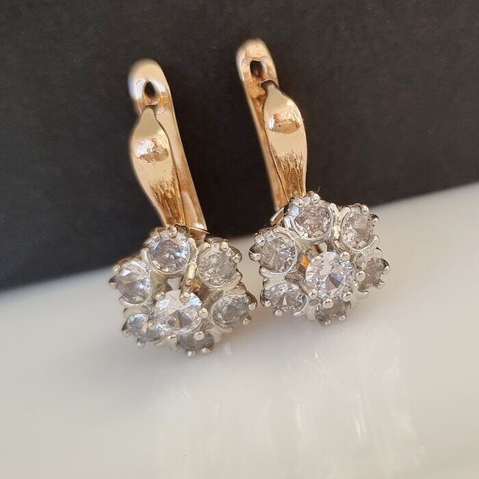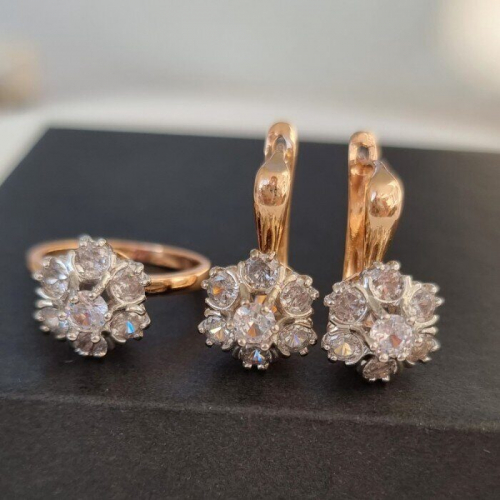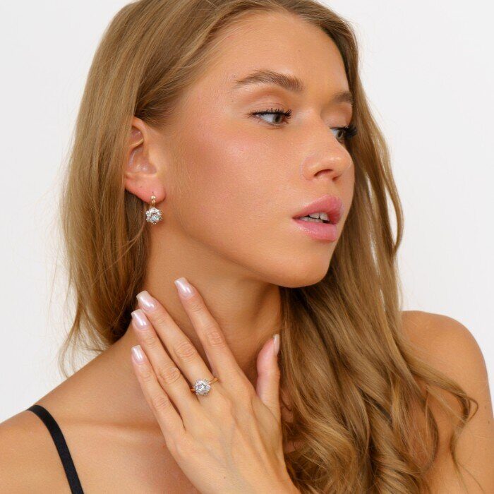 Комплект ювелирной бижутерии Дубайское золото, серьги и кольцо 18 р, двойное покрытие позолота и посеребрение, вставка:фианиты, цвет: прозрачный, арт.213.032-18