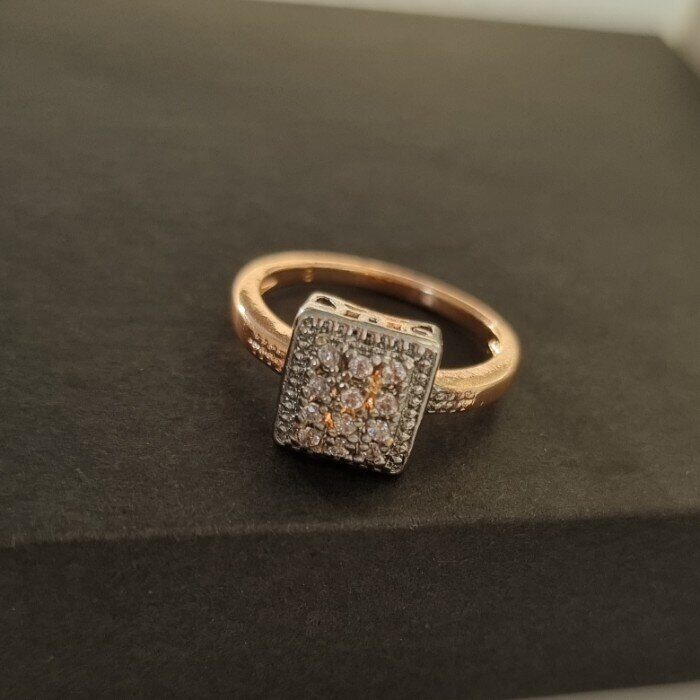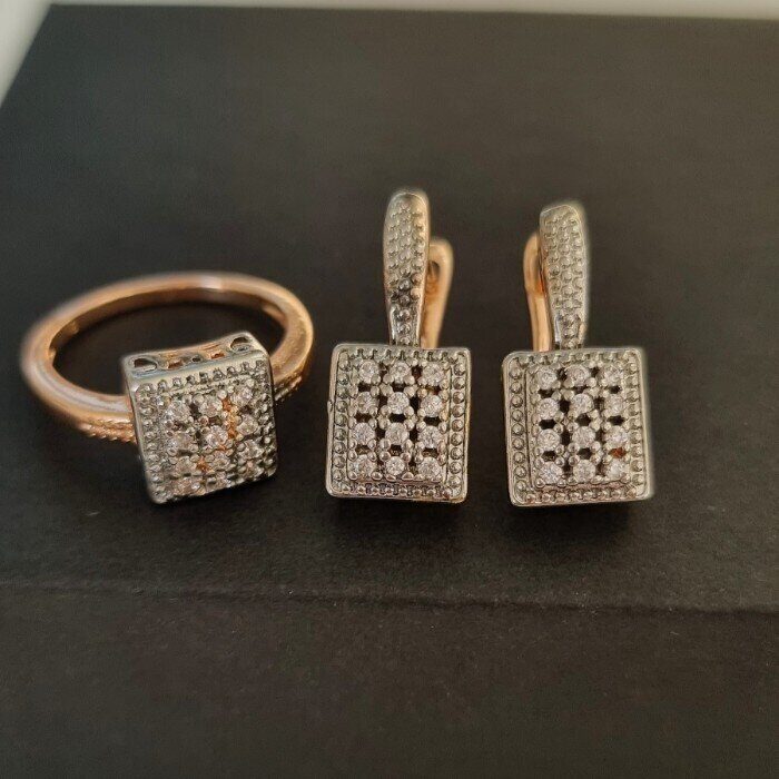Комплект ювелирной бижутерии Дубайское золото, серьги и кольцо 19 р, двойное покрытие позолота и посеребрение, вставка:фианиты, цвет: прозрачный, арт. 213.051-19