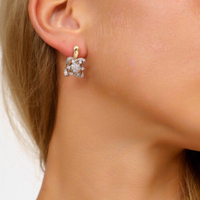 Описание Уценка! Небольшие потертости на поверхности. Цветок на одной серьге расположен немного криво. Размер: серьги - 2,1*1,3 см. Замок: английский. Материал: бижутерный сплав. Вес: 14 гр.