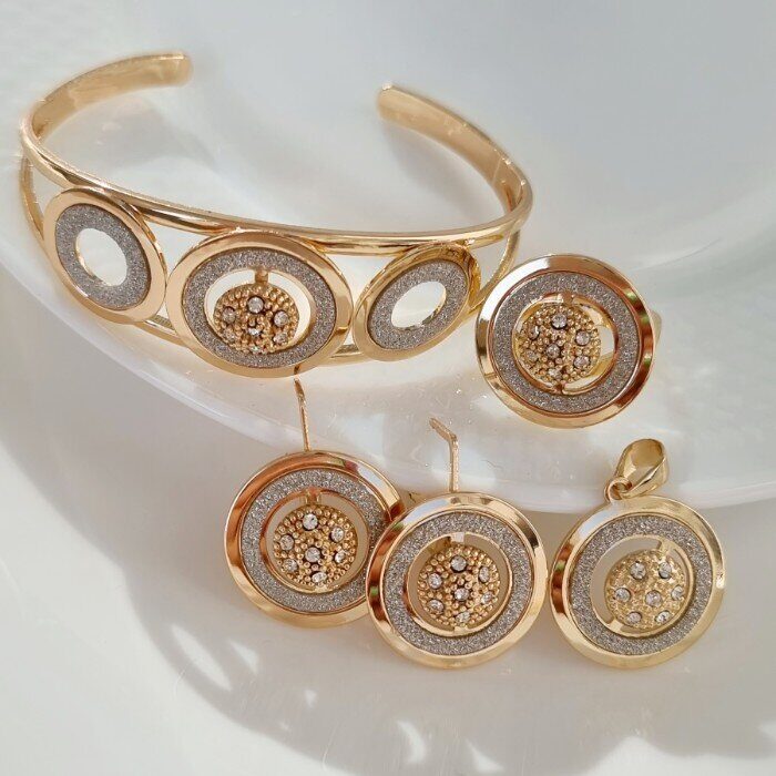 Комплект ювелирной бижутерии Дубайское золото: серьги, кулон и жесткий браслет, цвет: золотистый Уценка арт. 08.2509 (216.071)