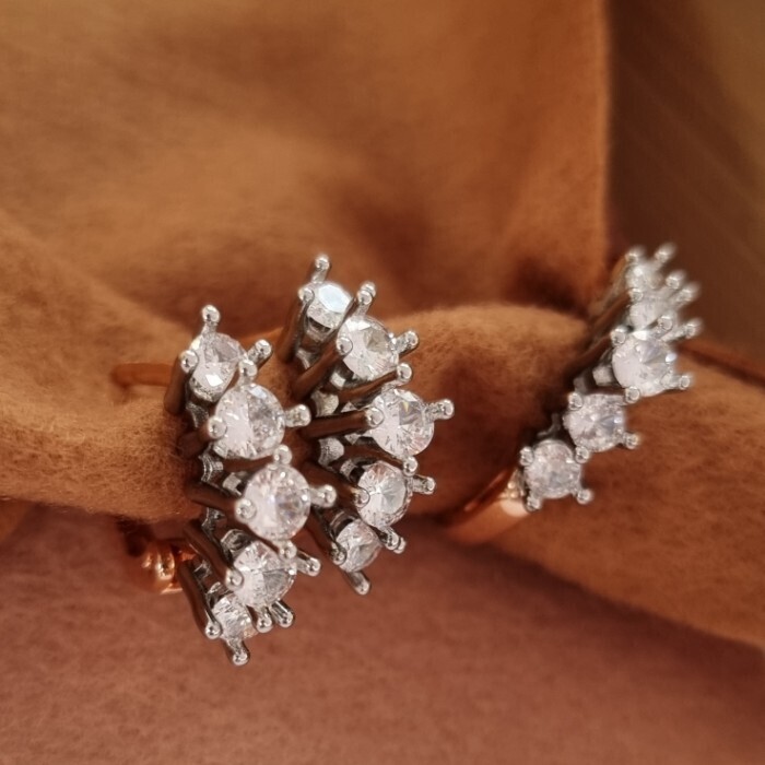 Комплект ювелирной бижутерии Дубайское золото в форме дорожки, серьги и кольцо 18 р, двойное покрытие позолота и посеребрение, вставка: фианиты, цвет: прозрачный,Уценка, арт. 08.2142