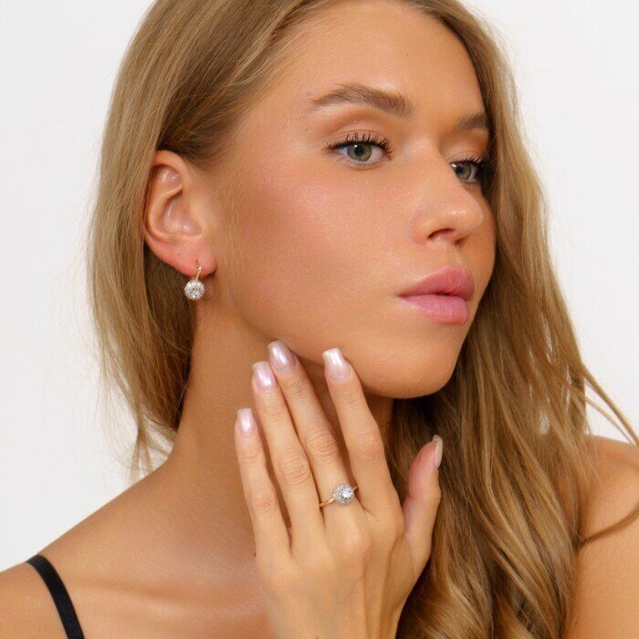 Комплект ювелирной бижутерии Итальянское золото (покрытие желтое 14к), серьги и кольцо 17 р, двойное покрытие позолота и посеребрение, вставка:фианиты, цвет: прозрачный, арт.213.025-17