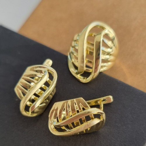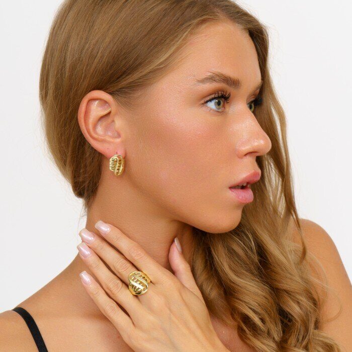 Комплект ювелирной бижутерии Итальянское золото (покрытие желтое 14к), серьги и кольцо 17 р, покрытие позолота, арт. 213.066-17