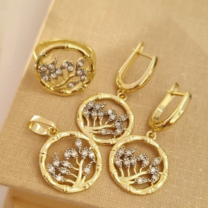 Комплект ювелирной бижутерии Итальянское золото (покрытие желтое 14к), серьги и кольцо 18 р, вставка: фианиты, Уценка, арт.08.2212 (213.156-18 )