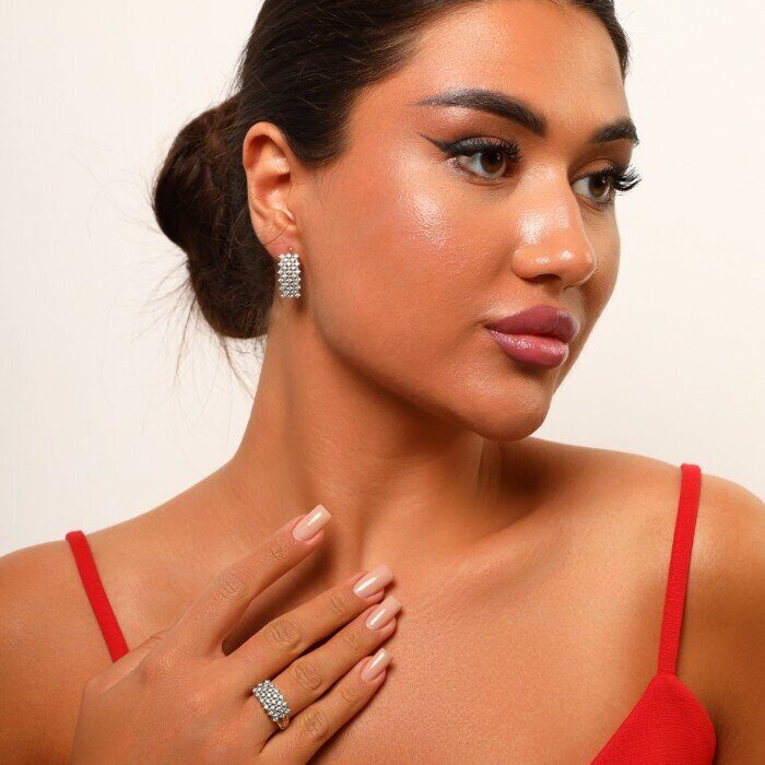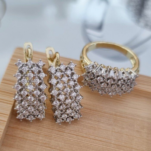 Комплект ювелирной бижутерии Итальянское золото (покрытие желтое 14к), серьги и кольцо, вставка: фианиты, р-р 17, арт. 216.051-17