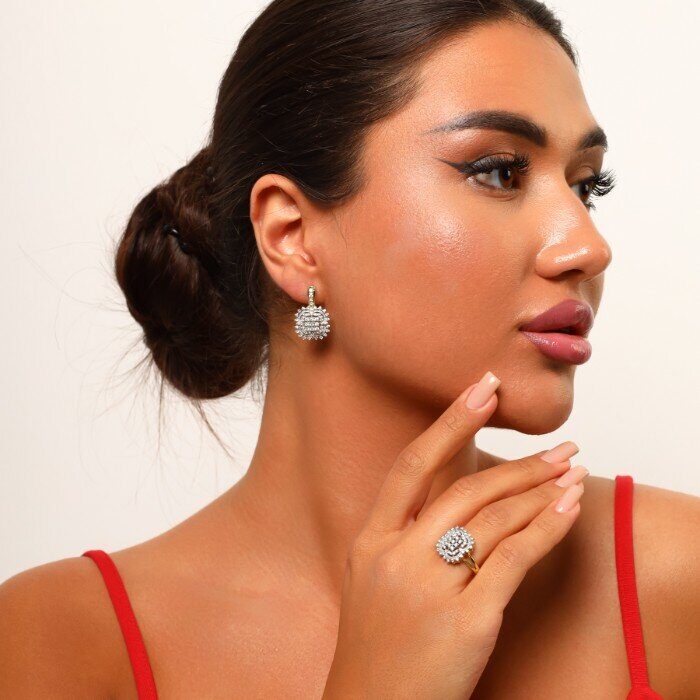 Комплект ювелирной бижутерии Итальянское золото (покрытие желтое 14к), серьги и кольцо, вставка: фианиты, р-р 18,5, арт.216.058-18,5