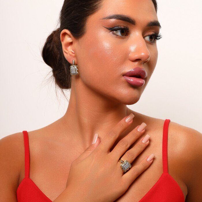 Описание Размер серьги: 2,7*1,4 см. Замок: английский. Вес комплекта: 11 гр.