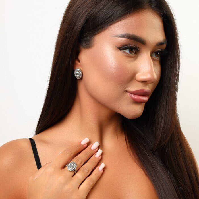 Описание Уценка! небольшие потертости на поверхности, отсутствует несколько страз.Размер серьги: 2*1,5 см. Замок: английский. Вес комплекта: 12 гр.