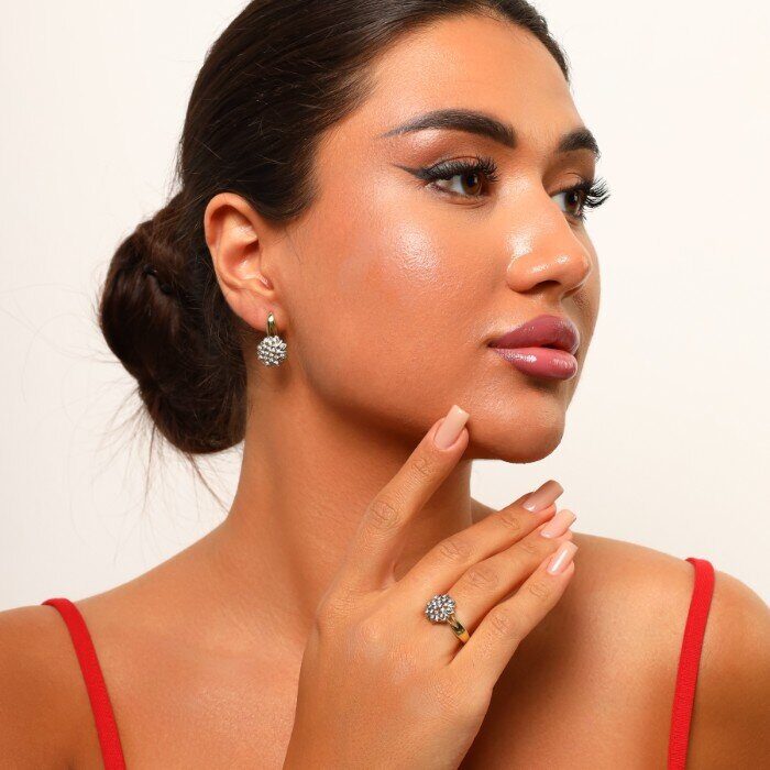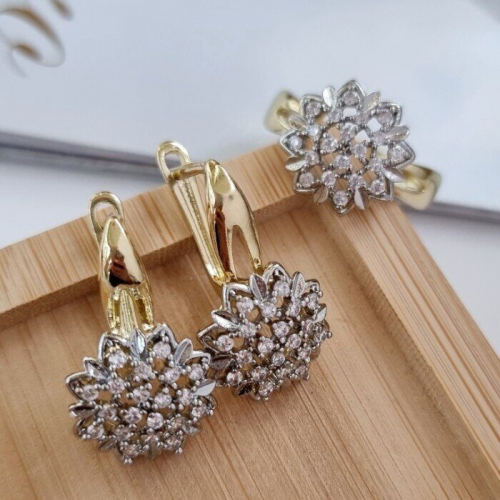 Комплект ювелирной бижутерии Итальянское золото (покрытие желтое 14к), серьги и кольцо, вставка: фианиты, р-р 19, арт.216.057-19