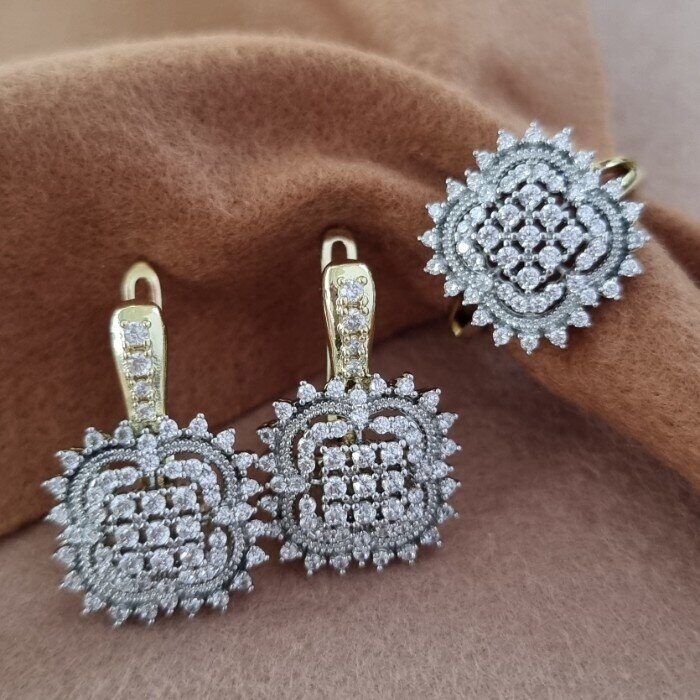 Описание Размер серьги: 2,5*1,5 см. Замок: английский. Вес комплекта: 12 гр.