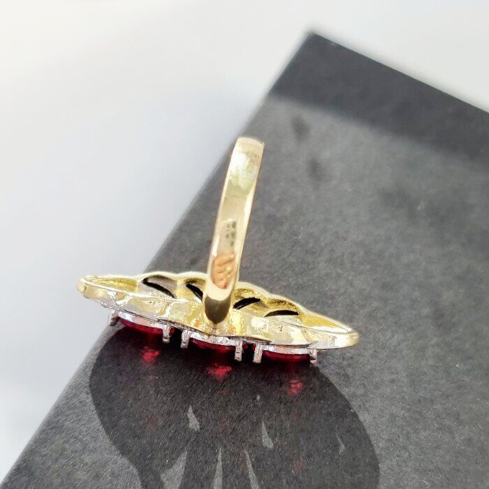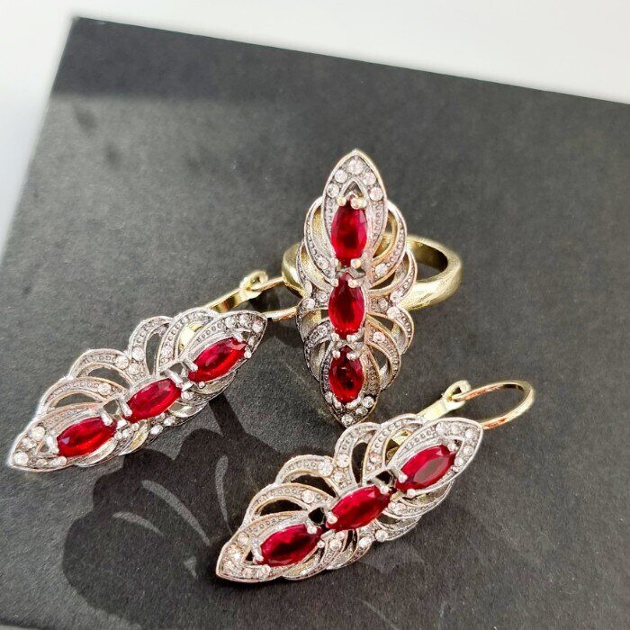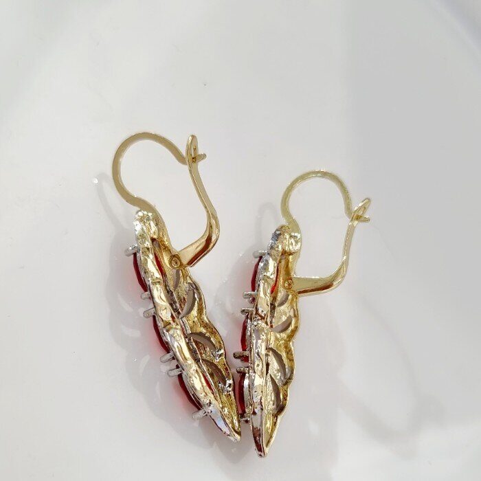 Комплект ювелирной бижутерии Итальянское золото (покрытие желтое 14к), серьги крупные и кольцо 17 р, покрытие позолота и посеребрение, вставка: фианиты, цвет: прозрачный и красный, арт.213.053-17