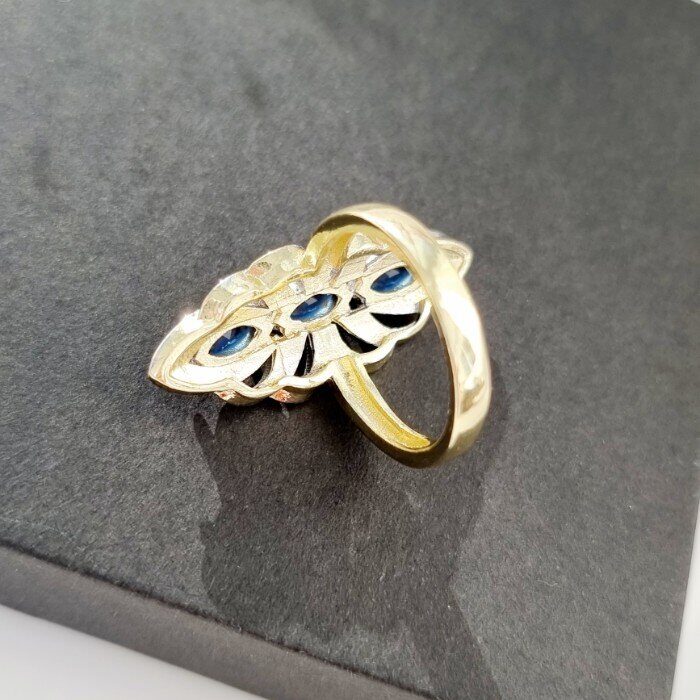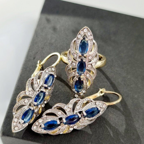 Комплект ювелирной бижутерии Итальянское золото (покрытие желтое 14к), серьги крупные и кольцо 18,5 р, покрытие позолота и посеребрение, вставка: фианиты, цвет: прозрачный и синий, арт.213.054-18,5