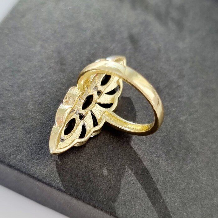 Комплект ювелирной бижутерии Итальянское золото (покрытие желтое 14к), серьги крупные и кольцо 20 р, покрытие позолота и посеребрение, вставка: фианиты, цвет: прозрачный и черный, арт.213.055-20
