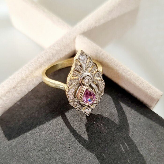 Комплект ювелирной бижутерии Итальянское золото (покрытие желтое 14к), серьги висячие и кольцо 18 р, покрытие позолота и посеребрение, вставка: фианиты, цвет: прозрачный и сиреневый, арт. 213.038-18
