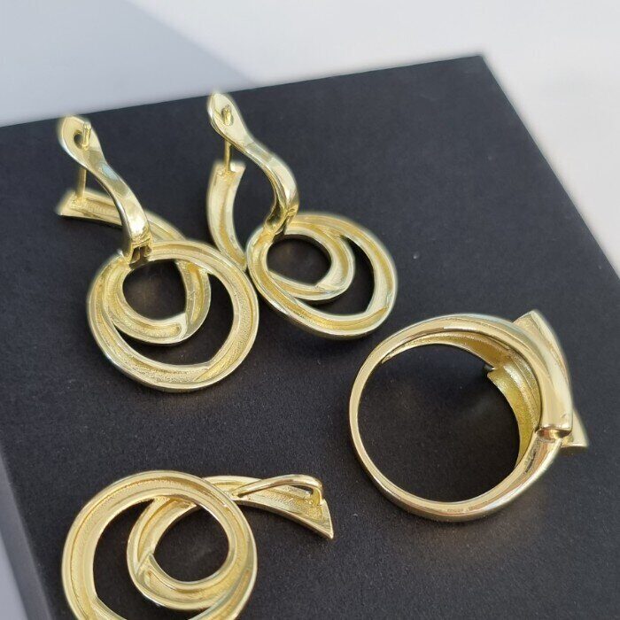 Комплект ювелирной бижутерии Итальянское золото (покрытие желтое 14к)в геометрическом стиле, серьги крупные, кулон и кольцо 17 р, покрытие позолота, арт. 213.063-17