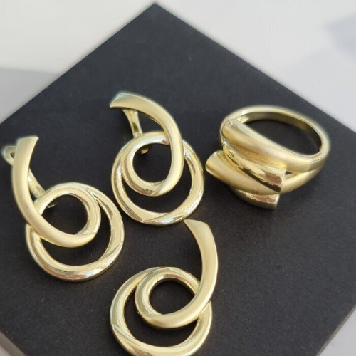 Комплект ювелирной бижутерии Итальянское золото (покрытие желтое 14к)в геометрическом стиле, серьги крупные, кулон и кольцо 18 р, покрытие позолота, арт. 213.063-18