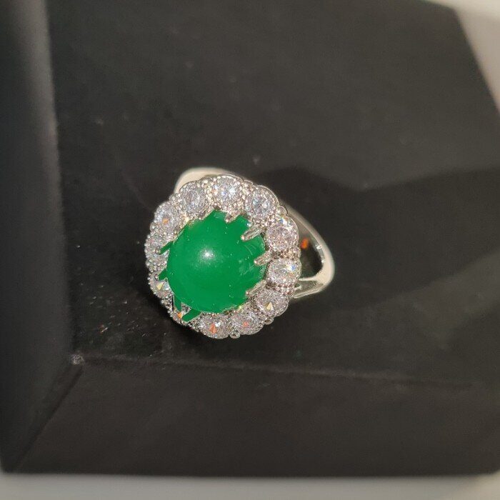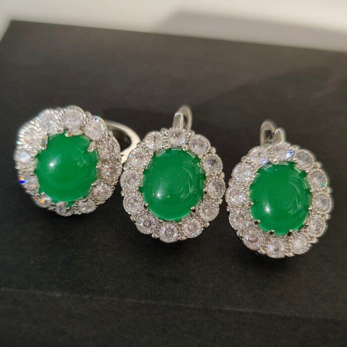 Комплект ювелирной бижутерии Итальянское золото, серьги крупные и кольцо 18 р, покрытие поверебрение, вставка: фианиты, цвет: прозрачный и зеленый матовый, арт.213.062-18