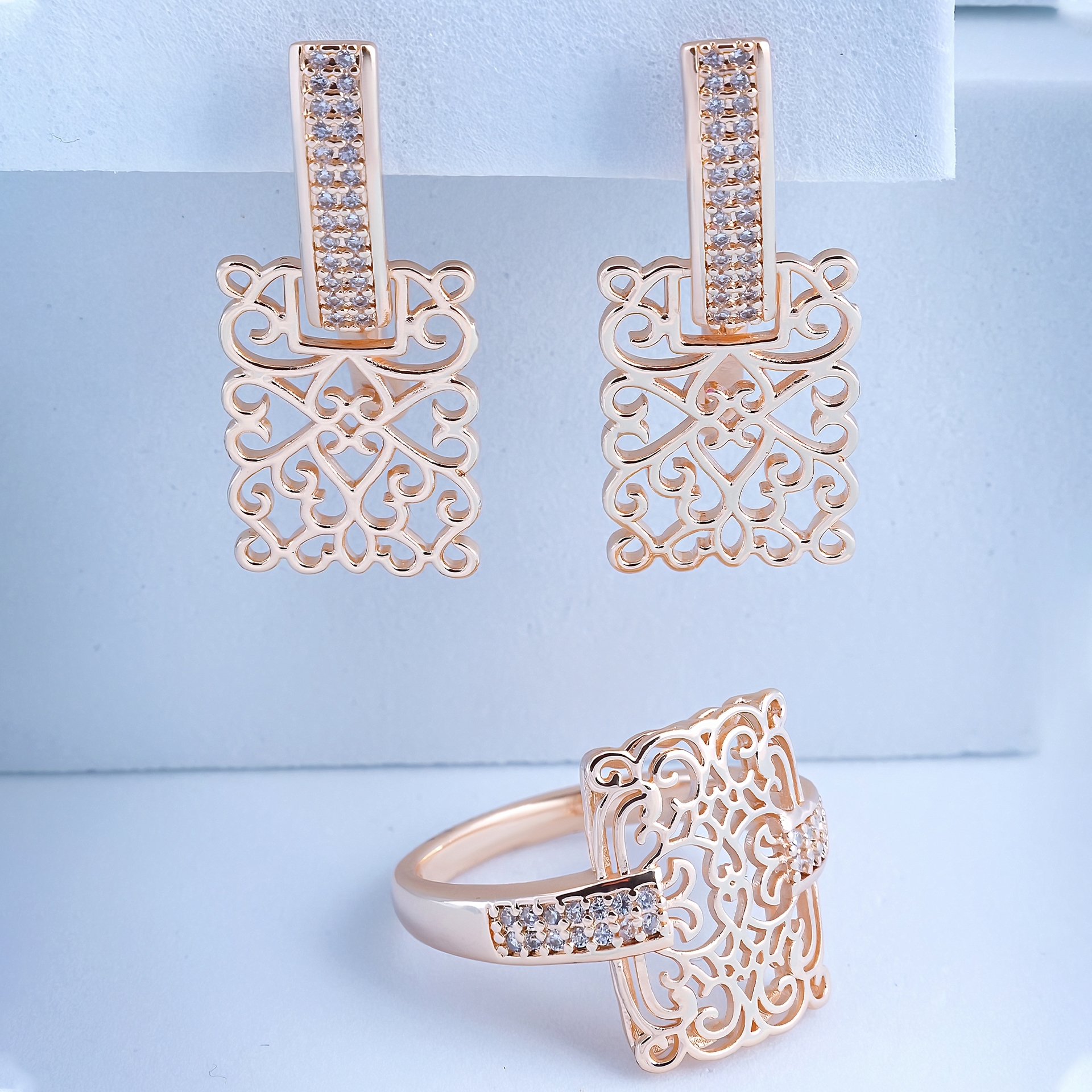 Комплект ювелирной бижутерии коллекция "Дубай" серьги и кольцо 18 р, покрытие позолота, вставка: фианиты, цвет: прозрачный,Уценка, арт.08.2486