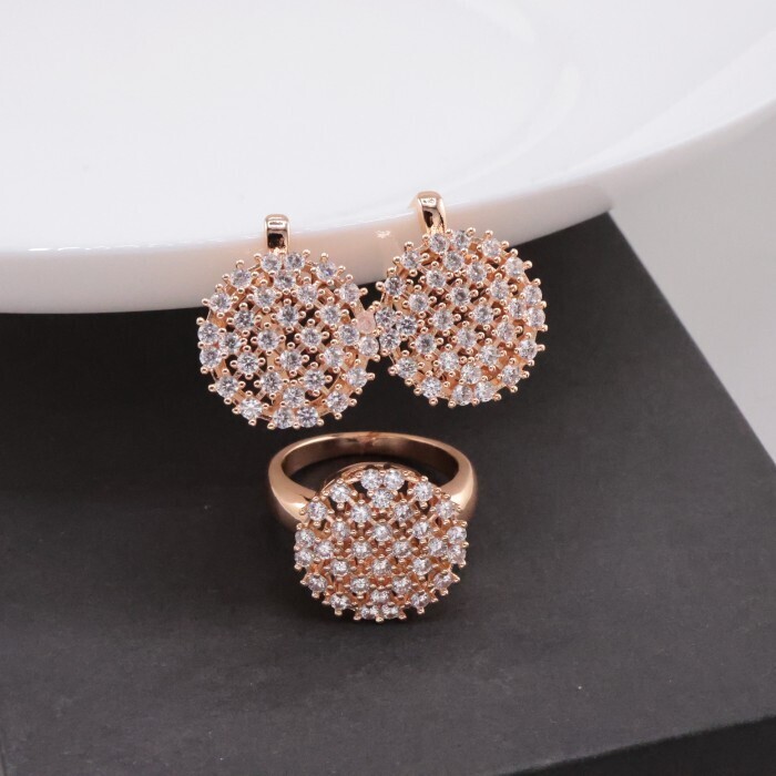 Комплект ювелирной бижутерии коллекция "Дубай" серьги и кольцо 18 р, покрытие позолота, вставка: фианиты, цвет: прозрачный, Уценка, арт.08.2561