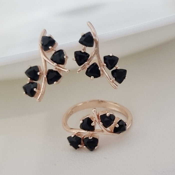 Комплект ювелирной бижутерии коллекция "Дубай" серьги и кольцо 19 р, покрытие позолота, вставка: фианиты, цвет: черный, арт.215.497-19