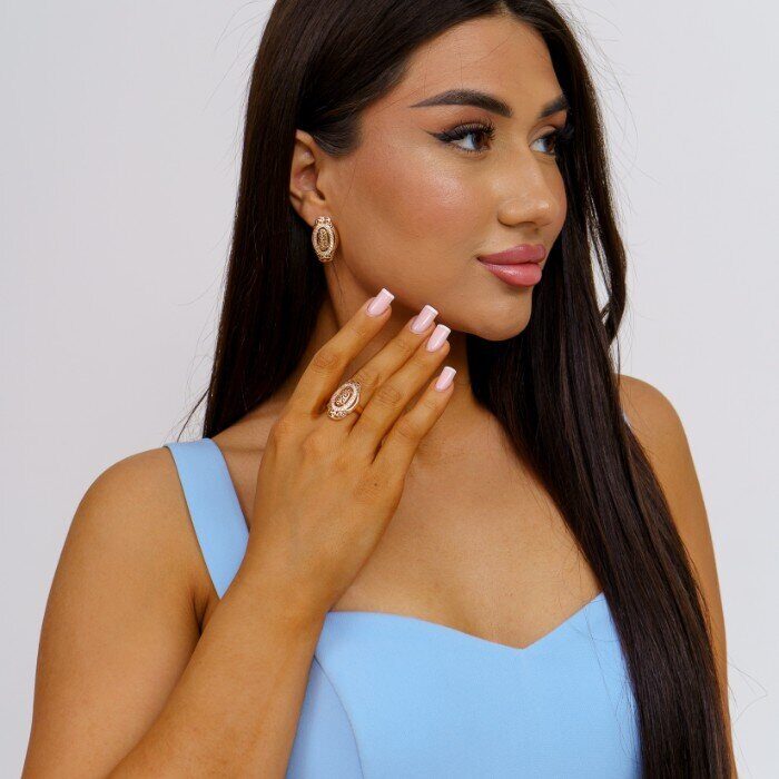 Комплект ювелирной бижутерии коллекция "Дубай",серьги и кольцо покрытие позолота, вставка: фианиты, 098, р-р 18,5, арт.08.1369