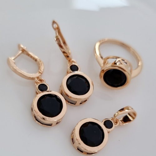 Рейтинги товара «Комплект ювелирной бижутерии коллекция "Дубай" серьги, кольцо и кулон покрытие позолота, вставка: крупный фианит, цвет: черный, 17 р,Уценка, арт.08.1899»