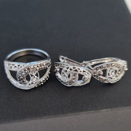 Отзывы и вопросы о товаре «Комплект ювелирной бижутерии коллекция "Дубай" серьги, кольцо и кулон покрытие позолота, вставка: крупный фианит, цвет: черный, 17 р,Уценка, арт.08.1899»