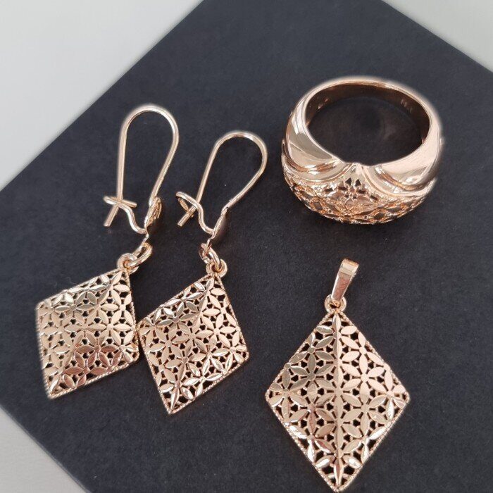 Комплект ювелирной бижутерии коллекция Дубай: серьги, кольцо, кулон, покрытие позолота,р.р 17, Е-013, арт.001.938-17
