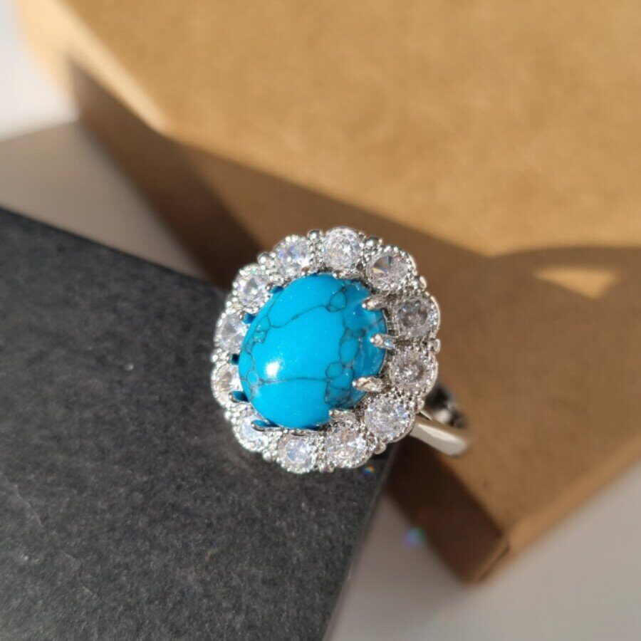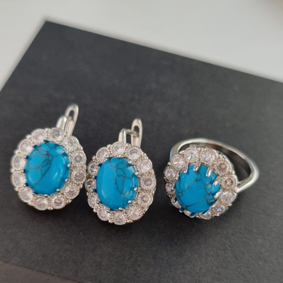 Описание Кольцо: 2*1.6 см, Серьги: 2.3*1.6 см. Камень: искусст.