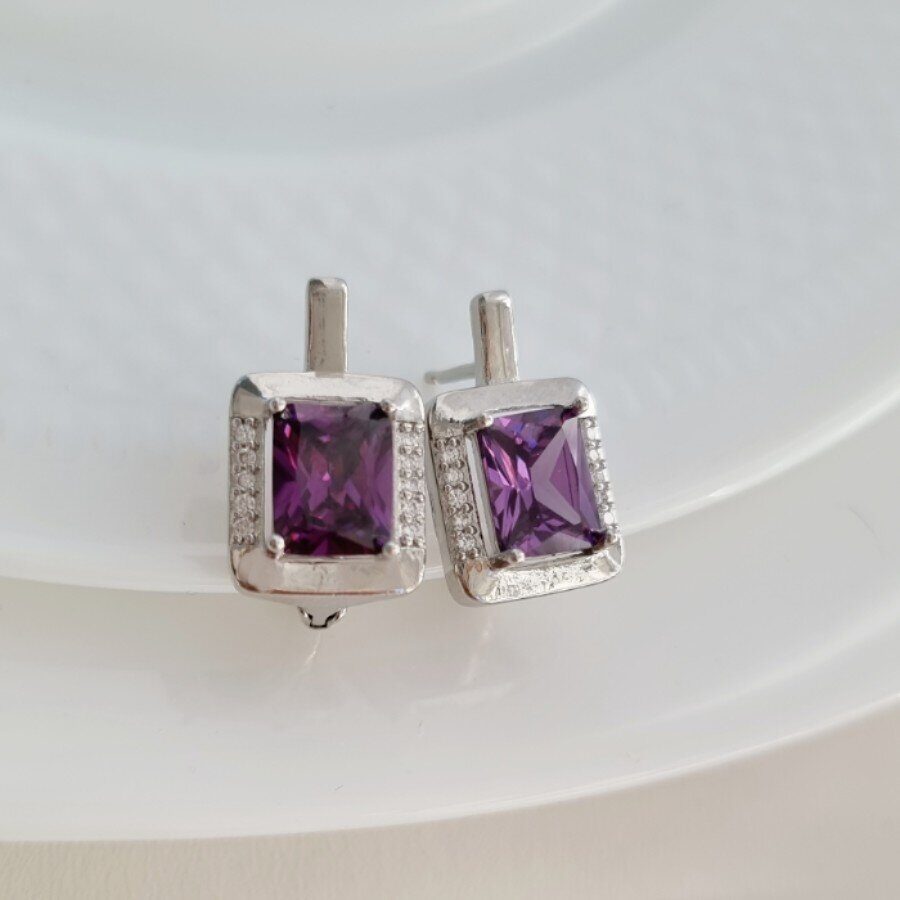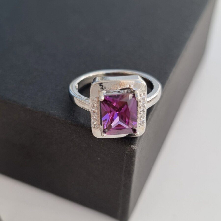 Комплект ювелирной бижутерии, посеребрение: серьги и кольцо с фиолетовым камнем, р-р 19, 13095, арт.213.012-19