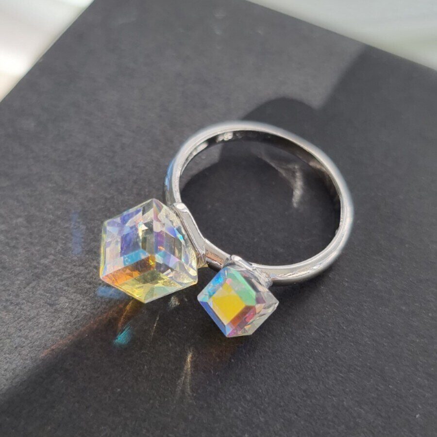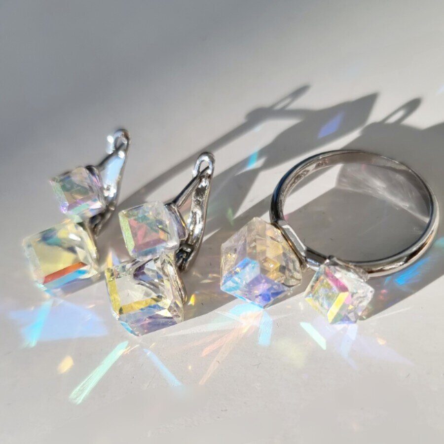 Комплект ювелирной бижутерии, посеребрение: серьги и кольцо с перламутровыми камнями, р-р 17, 13085, арт.213.007-17