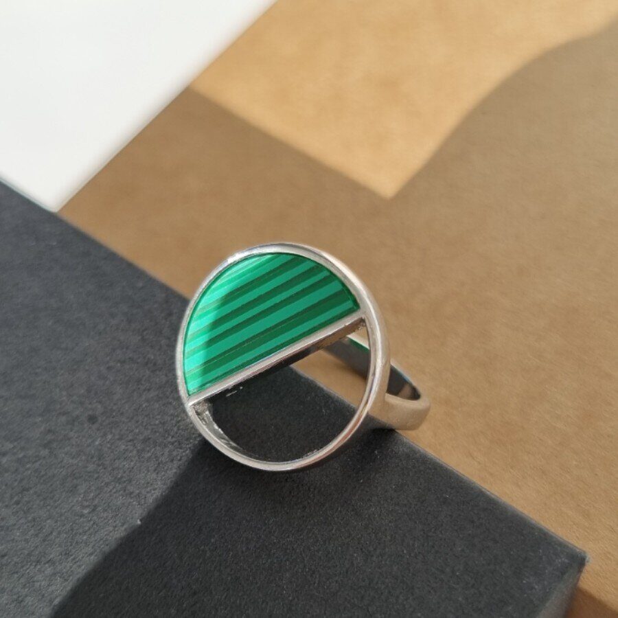 Комплект ювелирной бижутерии, посеребрение: серьги и кольцо с зеленой вставкой, р-р 21, 13085, арт.213.010-21