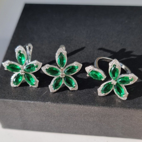Описание Кольцо: 2*1.5 см, Серьги: 2.3*2 см.