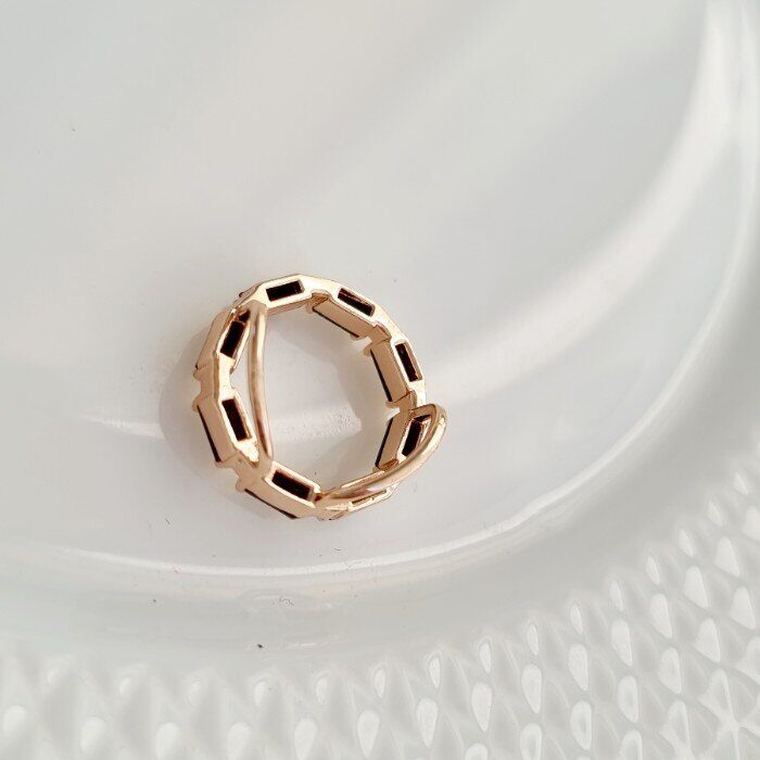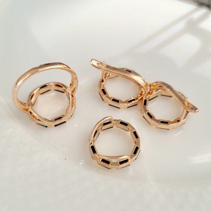 Комплект ювелирной бижутерии в геометрическом стиле Дубайское золото, серьги, кулон и кольцо 19 р, покрытие позолота, цвет: черный, Уценка, арт. 08.1783