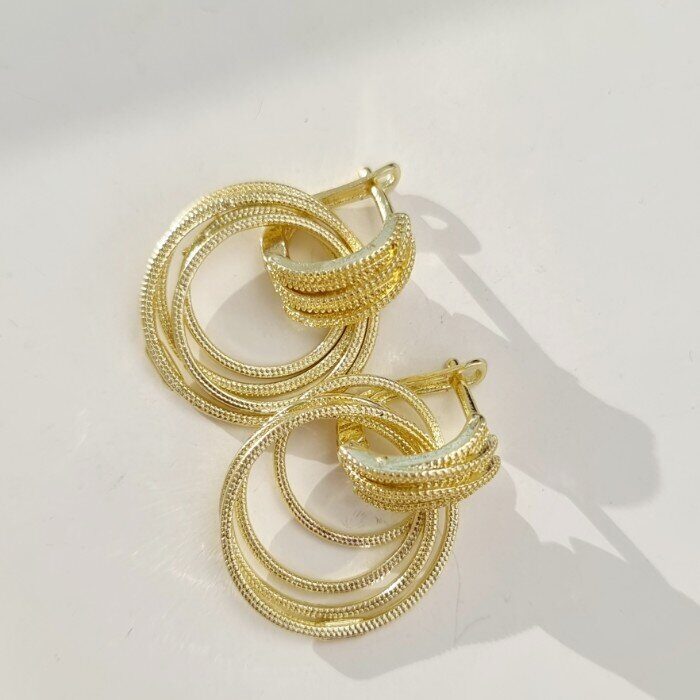 Комплект ювелирной бижутерии в геометрическом стиле Итальянское золото (покрытие желтое 14к), серьги, кулон и кольцо 19 р, покрытие позолота, арт.213.057-19