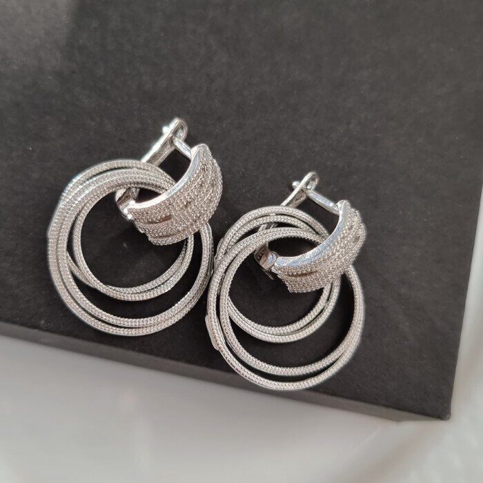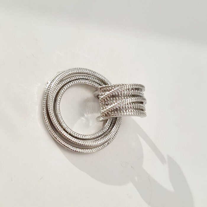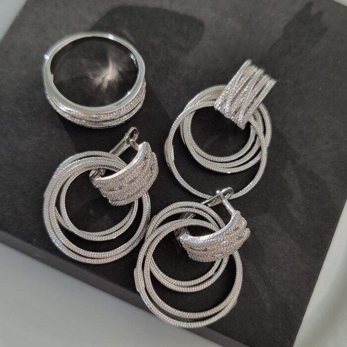 Комплект ювелирной бижутерии в геометрическом стиле серьги, кулон и кольцо 18 р, покрытие посеребрение, арт.213.058-18