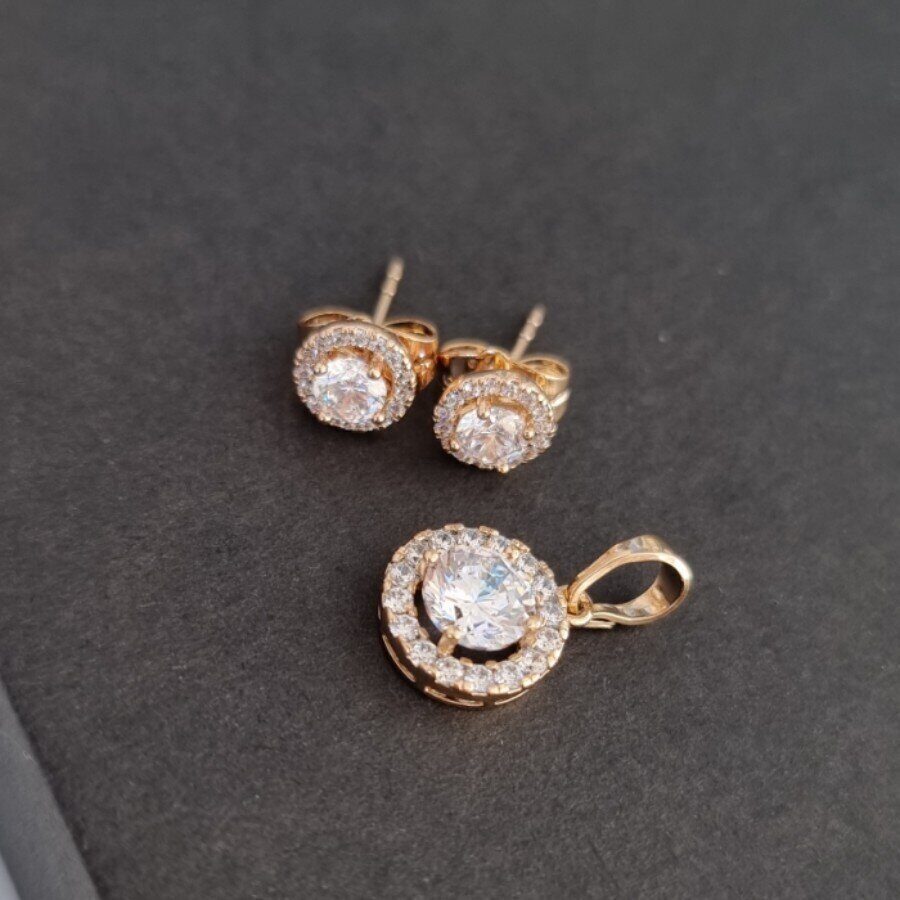 Комплект ювелирной бижутерии "Xuping": серьги и кулон,покрытие: позолота, вставка: фианиты, X000787340, арт.001.858