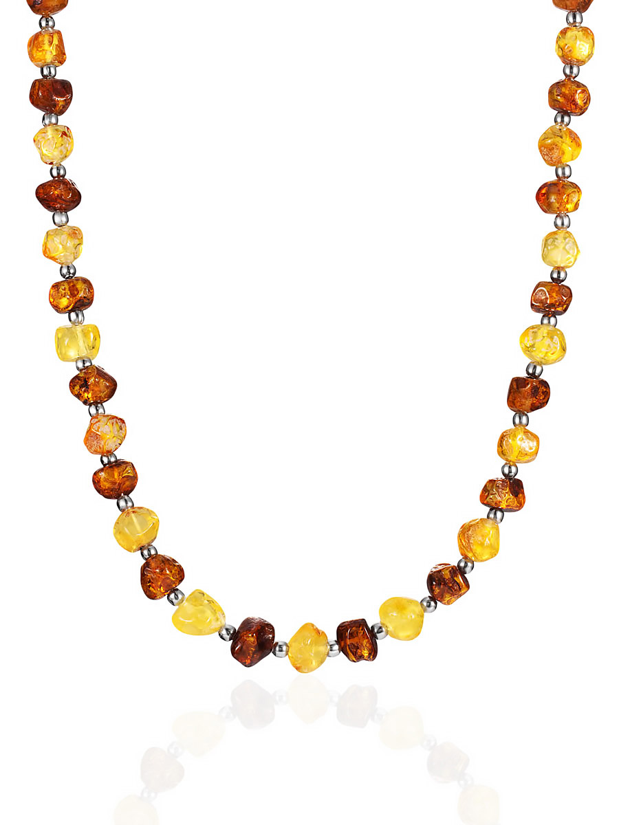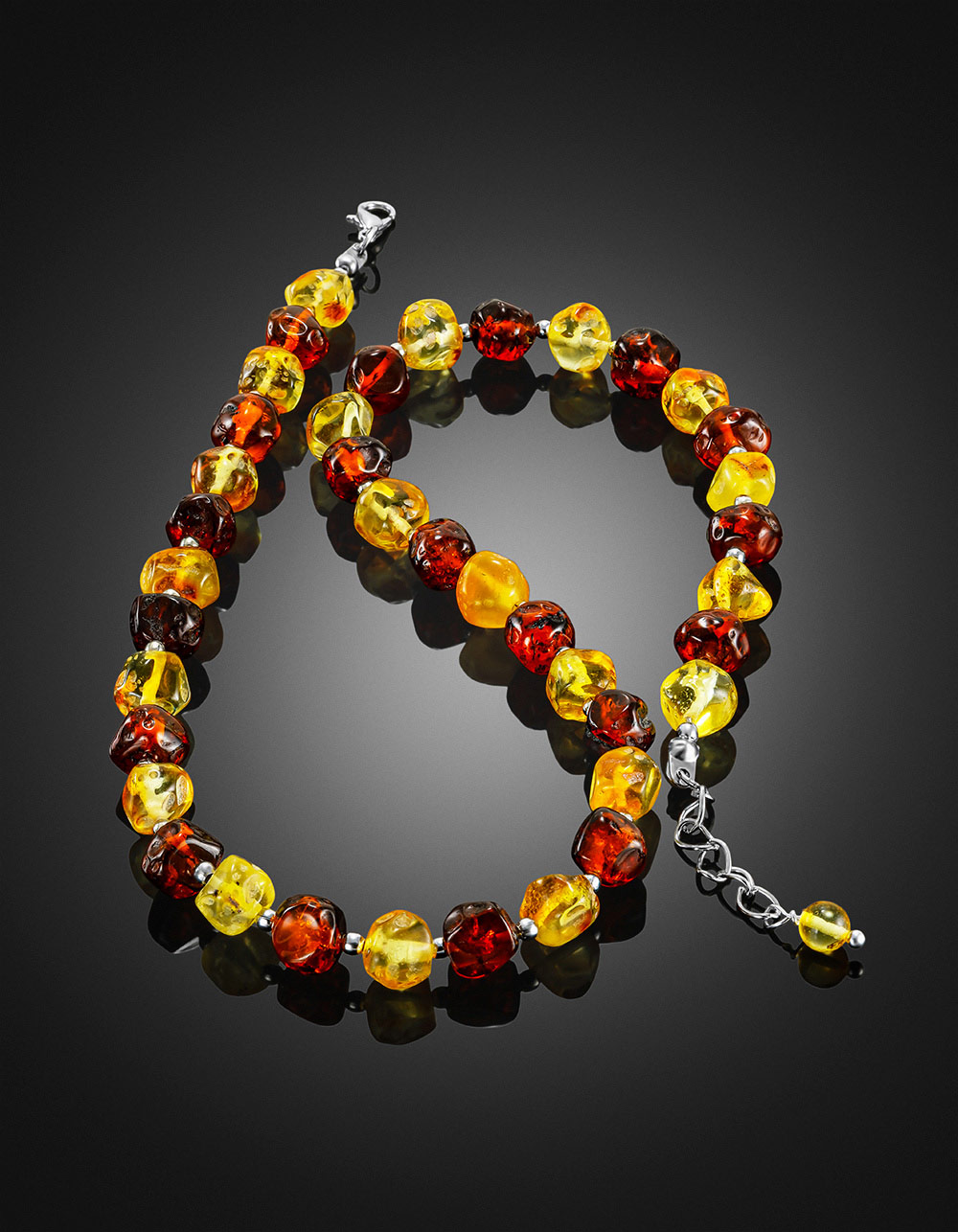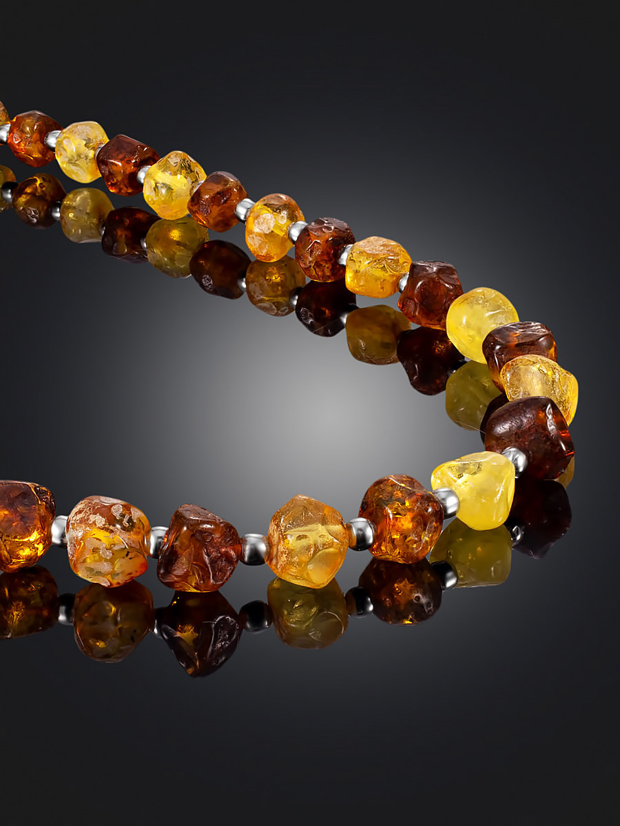 Короткие бусы из натурального «кусаного» янтаря тёплых оттенков